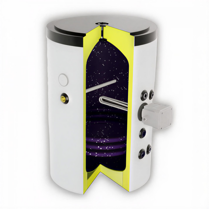 Бак предназначен для аккумулирования горячей воды от различных источников тепла. Бак серии «Р EASY» улучшает гибкость системы ГВС, позволяя Вам аккумулировать постоянный объем горячей воды, использовать рециркуляцию ГВС для повышения комфорта пользования. А возможность подключения электрического нагревателя в отверстие с внутренней резьбой 1 1/2″, делает бак более универсальным.