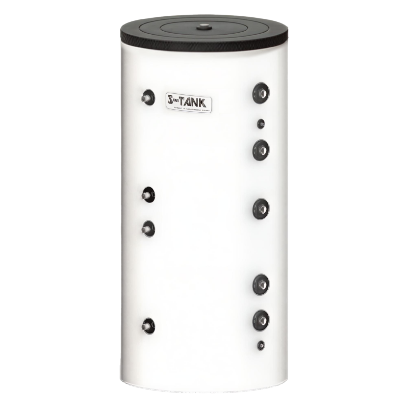 Удобен в системах, где есть переменная нагрузка — отопление + сезонное ГВС: бак аккумулирует тепло, а горячая вода готова «на потоке», без установки отдельного бойлера.