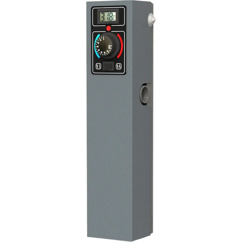 Котёл оснащён цифровым контроллером, обеспечивающим работу котла в двух режимах: по температуре теплоносителя (режим "вода"), либо по температуре воздуха (режим "воздух"). ТЭН из нержавейки, электронное управление, ротация ТЭНов. Возможность подключения комнатного термостата, GSM/Wi-Fi модуля, насоса.