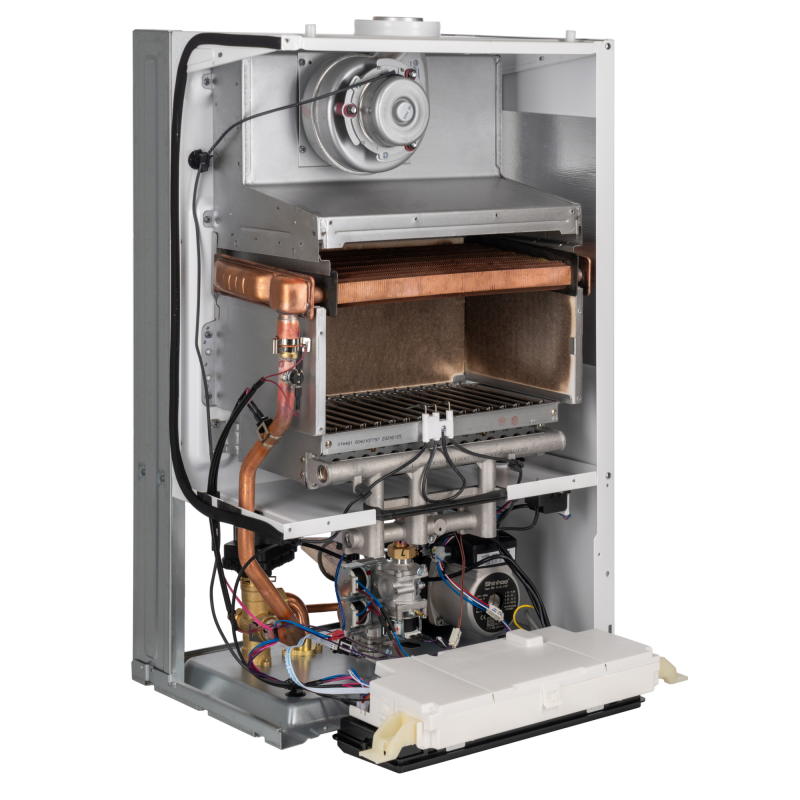 Устройство оснащено закрытой камерой сгорания, принудительным дымоудалением, медным теплообменником и электронной автоматикой — всё это обеспечивает стабильную работу, высокий комфорт и безопасность.