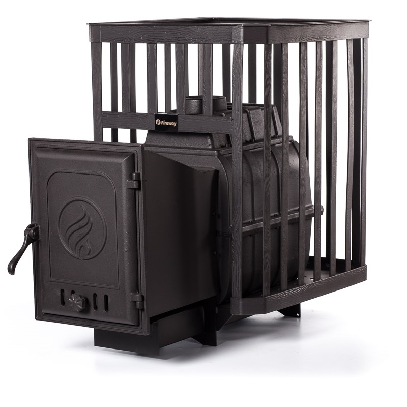 Банная печь Fireway ПароВар 18 Ковка (413) разработана для максимального комфорта поклонников русской бани и финской сауны. Отличается доступной ценой, простым монтажом, минимальными требованиями к уходу и обслуживанию, высоким качеством применяемых материалов и исполнения, а также долговечностью. Мощности этой модели печи-каменки хватит для отопления парной с полноценной теплоизоляцией, объем которой не превышает 18 куб.м. Дверца с термостойким стеклом позволяет контролировать расход дров и наблюдать за игрой пламени.
