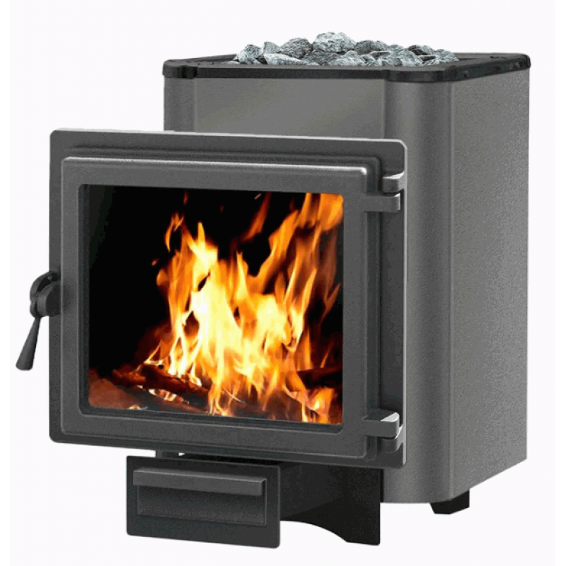 Банная чугунная печь ЭТНА Кратер 24 Панорама - печь для парной с объемом от 20 до 28 м.куб.. Печь укомплектована топочной глухой чугунной дверцей и конвекционно-вентилируемым кожухом. Выносная топка позволяет протапливать печь из соседнего с парной помещения. Большая масса камней позволяет надолго сохранять тепло после угасания огня.