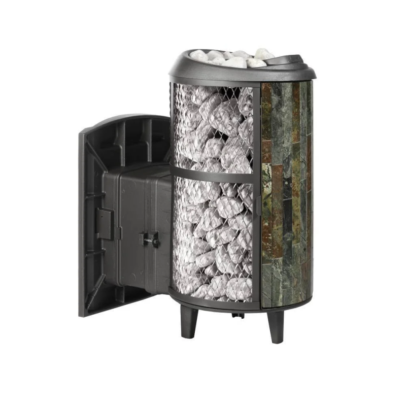 Печь для бани ProMetall «Атмосфера L» с комбинированной облицовкой «сетка + ламели из Жадеита» — модель с комбинированной облицовкой из нержавеющей сетки и ламелей. Особенность модели - открывающаяся дверь с ламелями. Это оригинальное решение обеспечивает быстрый прогрев парной.