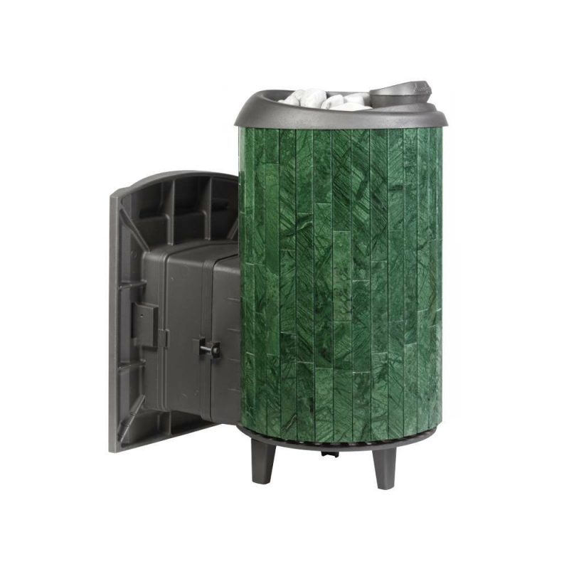 Высокая теплоёмкость: ламели из натурального камня “Верде Гватемала” аккумулируют тепло и медленно его отдают, что обеспечивает мягкий и продолжительный прогрев.