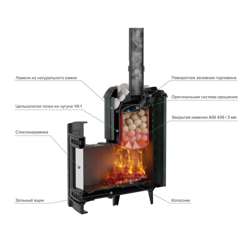 Удобство обслуживания: возможность замены каменки и ламелей при необходимости — упрощённый ремонт и сервис.
