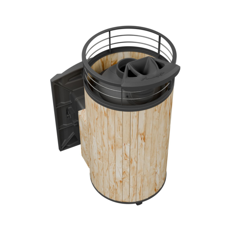 Печь для бани ProMetall «Атмосфера XL» с комбинированной облицовкой Окаменевшее дерево (ламель + сетка) и тоннелем — модель с увеличенной каменкой и повышенной производительностью. Ламели по периметру внешней каменки не только обладают хорошими теплонакопительными свойствами, но и придают печи оригинальный внешний вид