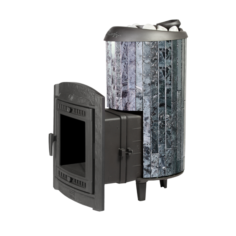 Чугунная банная печь ProMetall «Атмосфера XL» в ламелях из Пироксенита — модель с увеличенной каменкой и повышенной производительностью. Ламели из пироксенита по периметру внешней каменки не только обладают хорошими теплонакопительными свойствами, но и придают печи оригинальный внешний вид