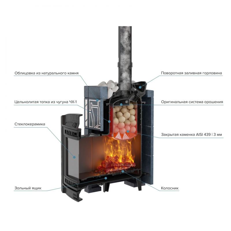 Печь комфортно работает в разных режимах: русская баня, сауна, хамам.