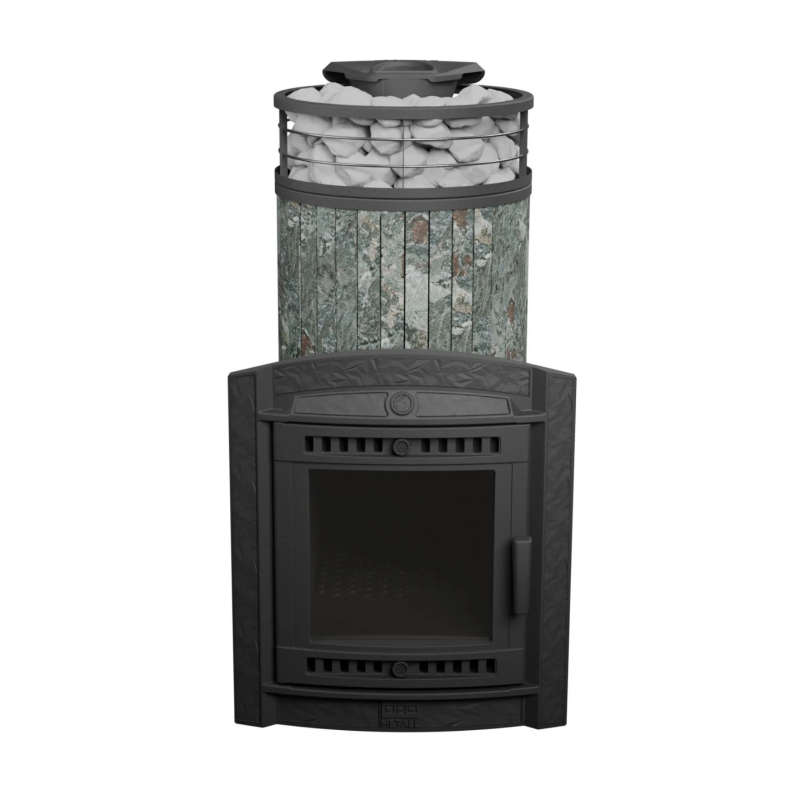Чугунная банная печь ProMetall «Атмосфера XL» Жадеит (ламель + сетка) — модель с увеличенной каменкой и повышенной производительностью. Ламели по периметру внешней каменки не только обладают хорошими теплонакопительными свойствами, но и придают печи оригинальный внешний вид