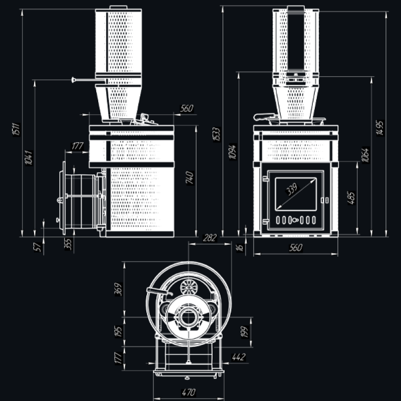 Корпус полностью из чугуна марок ЧХ1/ЧХ2/ЧХ3 — жаростойкость, прочность, долговечность.