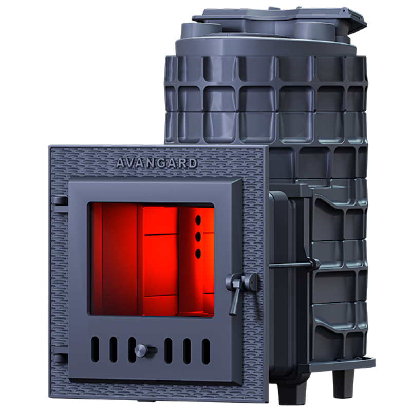Печь для бани Технолит АВАНГАРД ЗК 25 (М) — новый концепт чугунной теплонакопительной банной печи с прямым нагревом заряда. Корпус модульный, сборка происходит снизу вверх, модули соединяются по пазогребневой системе. Масса пароиспарителя в печи 51 кг, и он нагревается прямым контактом с пламенем. У пароиспарителя 2 поверхности с увеличенной рабочей площадью – снизу идёт нагрев огнём, а сверху поддаётся вода для пара. У печи уникальная, массивная каменка с теплонакопительными воронками, для получения легкого пара.