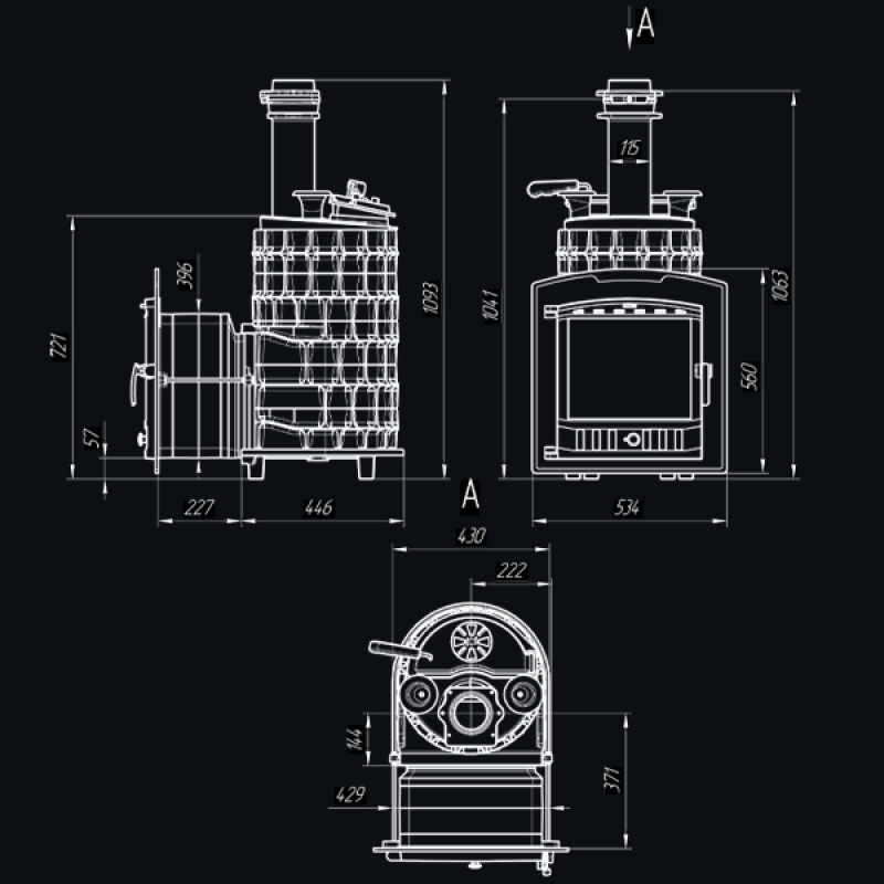Под каменкой на 3-х упорах установлен рассекатель пламени, он разделяет пламя на 3 потока и направляет сначала на боковые части корпуса для интенсивного нагрева стенок и конвекционного нагрева воздуха в парной. Для этого на наружных поверхностях расположены конвекционные рёбра. Дальше пламя проходит через выступы к выходу в дымоход, нагревая каменку. Каменка позволяет устанавливать различные стартовые модули вместе с шиберным блоком.