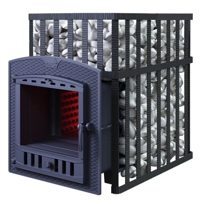 Эстетичность и комфорт — сетчатая конструкция каменки создаёт благоприятный микроклимат и уменьшает инфракрасное излучение.