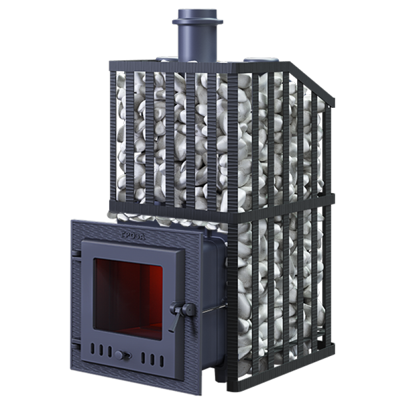 Печь легко модернизируется до полноценной печи предназначенной для Русской бани путем замены стальной сетки на каменную облицовку без демонтажа дымохода. Модель GROZA выполнена на базе топочного агрегата - экономичная модель для частного применения.