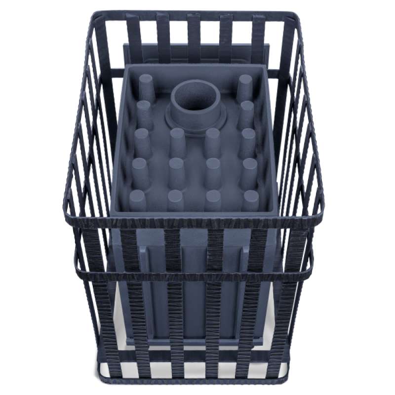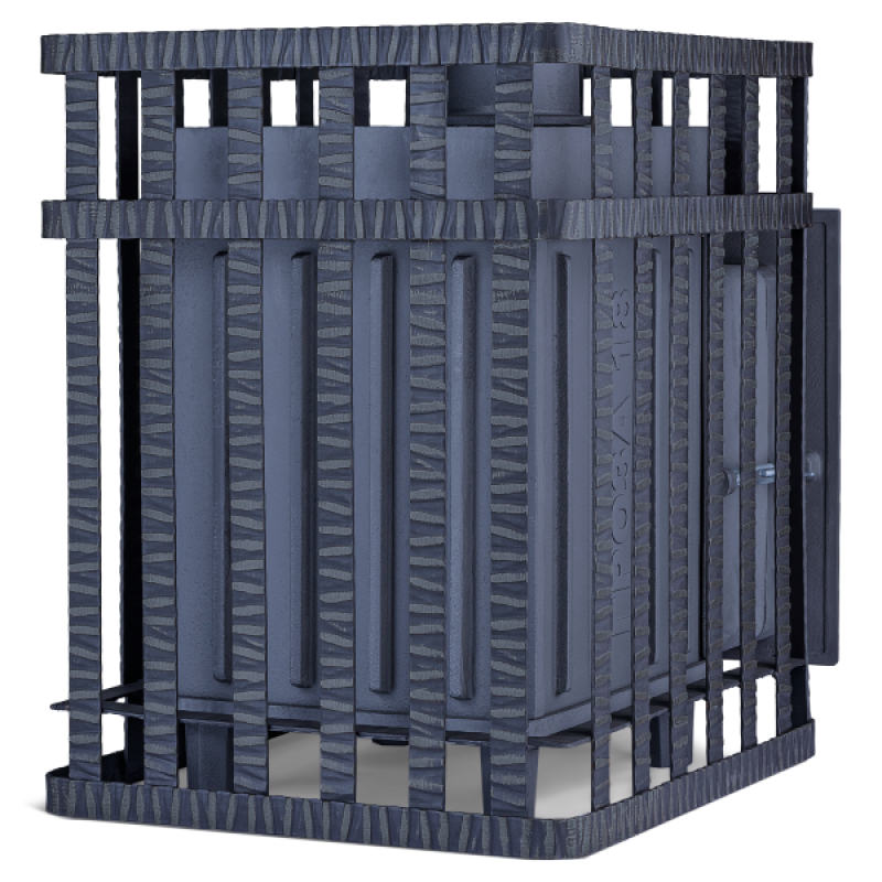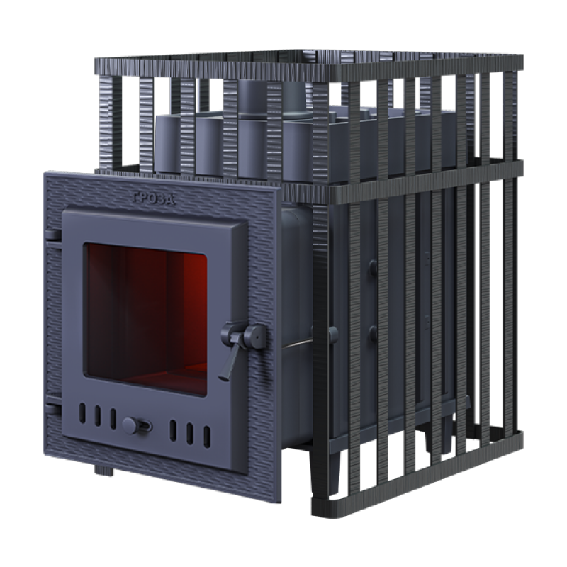 Печь для бани Технолит Гроза 24 (М) в сетке — это современные печи, рассчитанные на малые и средние размеры парных. Печь имеет прочную сборную конструкцию, без резьбовых и сварных соединений, детали выполнены из легированного чугуна. Топка печей «Гроза» состоит из двух камер, разделенных пламегасителем. Радиаторные выступы каменки, направленные вглубь топки, увеличивают площадь контакта огня с каменкой и эффективность теплосъема. Для увеличения площади поверхности нагрева камней каменка снаружи оборудована чугунными шипами, направленными вверх. Между шипами укладываются банные камни или дополнительные чугунные заклады, такие как ядра и чугунные шишки. Сами чугунные шипы также являются частью заряда для лучшего испарения воды.