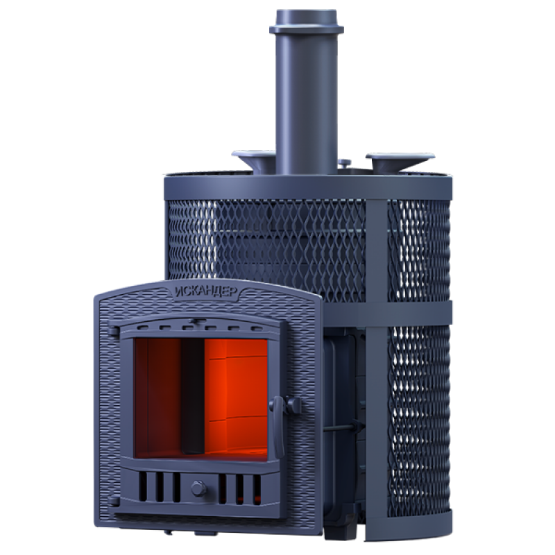 Модификация "Искандер ЗК" - это печь "Искандер" с закрытой каменкой, двумя паровыми пушками и дверцей для залповой подачи пара.