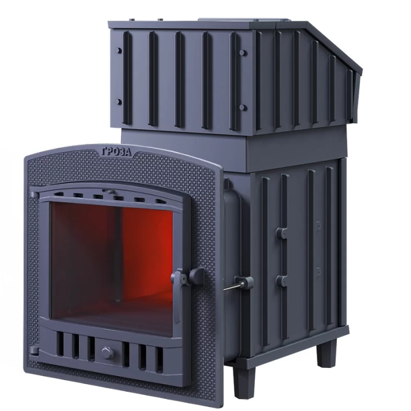 Печь для бани Технолит Гроза 24 (П2) Универсальный печь-комплект — это современные печи, рассчитанные на малые и средние размеры парных. Печь имеет прочную сборную конструкцию, без резьбовых и сварных соединений, детали выполнены из легированного чугуна. Топка печей «Гроза» состоит из двух камер, разделенных пламегасителем. Радиаторные выступы каменки, направленные вглубь топки, увеличивают площадь контакта огня с каменкой и эффективность теплосъема. Для увеличения площади поверхности нагрева камней каменка снаружи оборудована чугунными шипами, направленными вверх. Между шипами укладываются банные камни или дополнительные чугунные заклады, такие как ядра и чугунные шишки. Сами чугунные шипы также являются частью заряда для лучшего испарения воды.