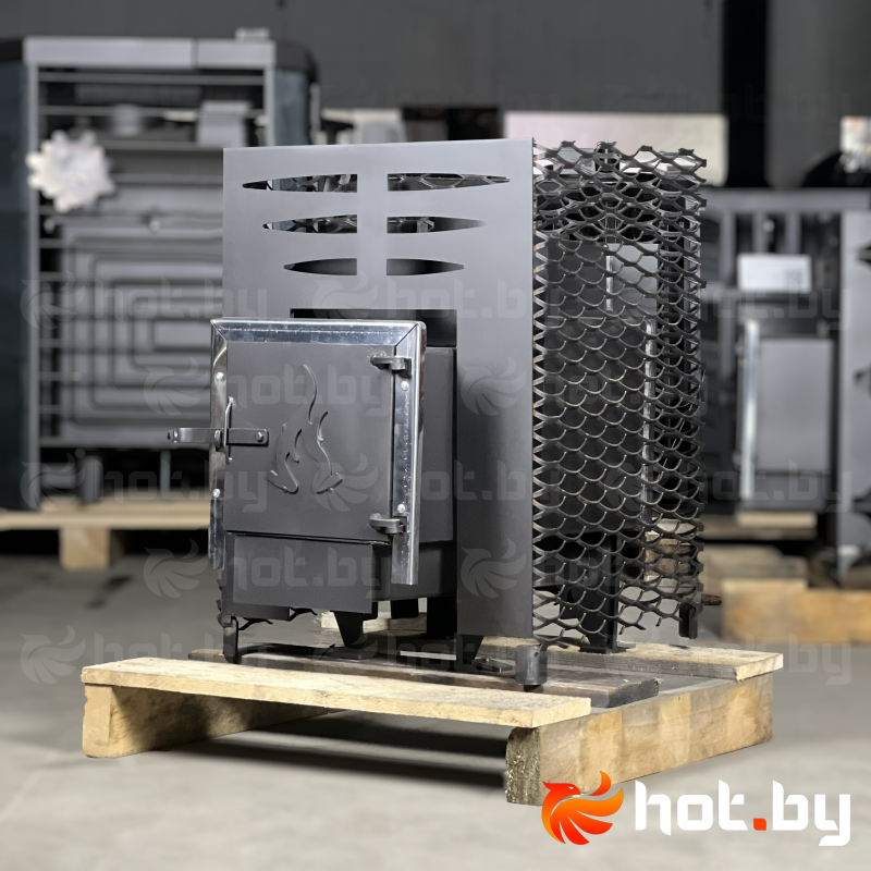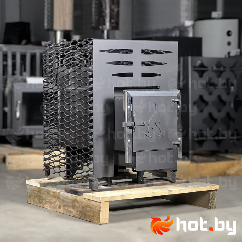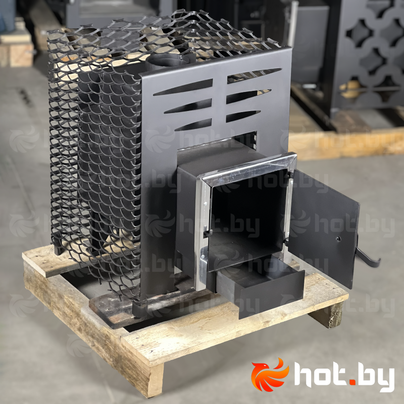 Печь для бани ХОТ Т24 Сетка — надёжная дровяная каменка, рассчитанная на эффективный обогрев парильных помещений объёмом до 24 м³. Корпус изготовлен из жаропрочной стали толщиной 6–8 мм, что гарантирует долгий срок службы и устойчивость к высоким температурам.