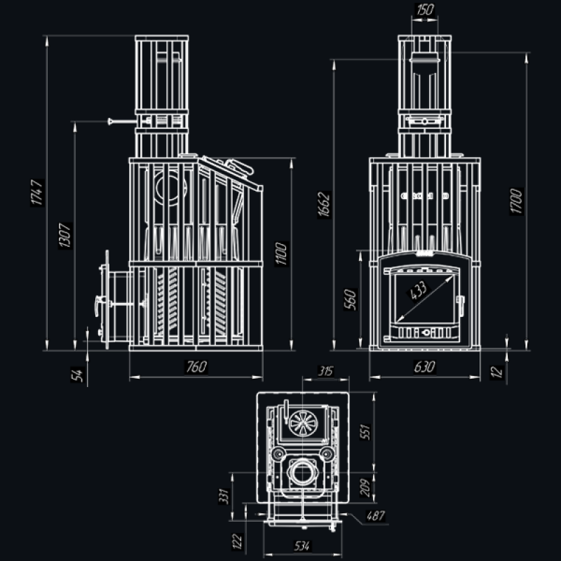 Печи линейки «GROM» имеют в комплекте чугунный короб для установки на каменку и чугунную стартовую трубу длиной 500 мм. Увеличенная масса, толщина боковых стенок 14 мм повышают надежность и теплоаккумулирующую способность, а для быстрого нагрева парной боковые стенки оборудованы конвекционными ребрами не только снаружи, но и на внутренней поверхности.