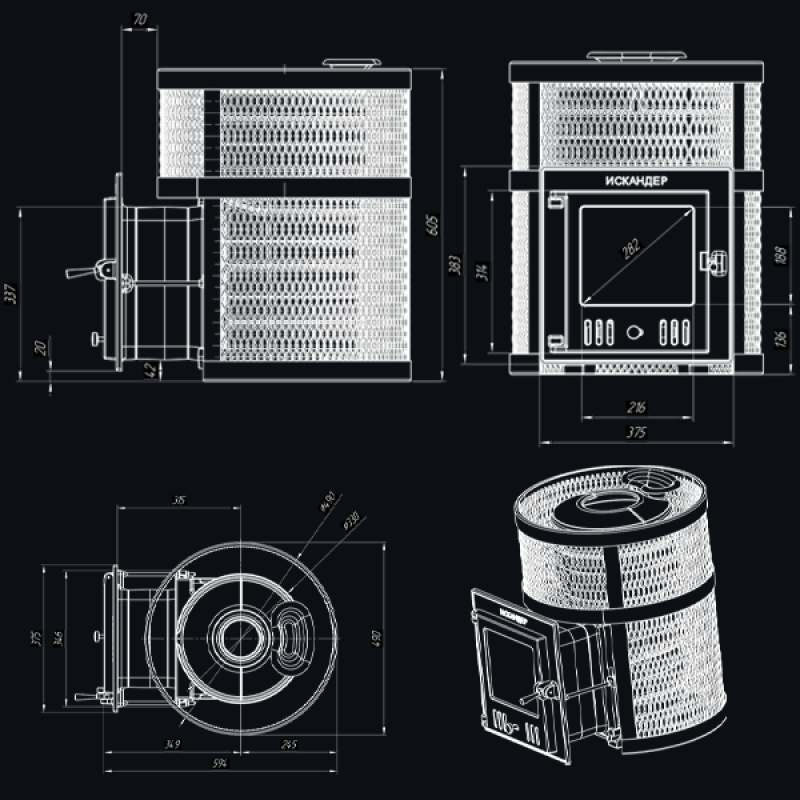 Модификация "Искандер ЗК" - это печь "Искандер" с закрытой каменкой, двумя паровыми пушками и дверцей для залповой подачи пара.