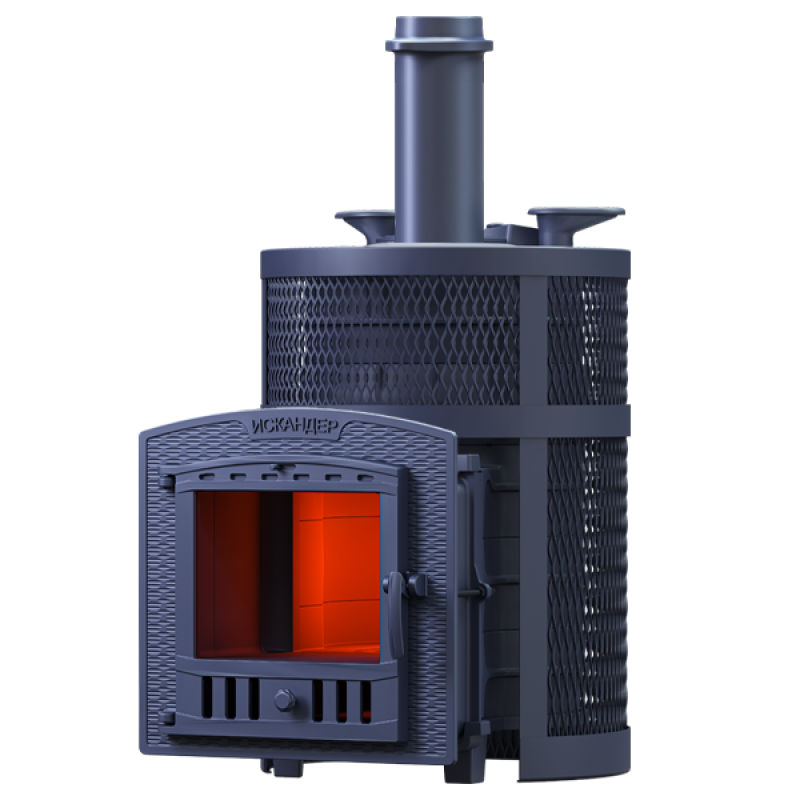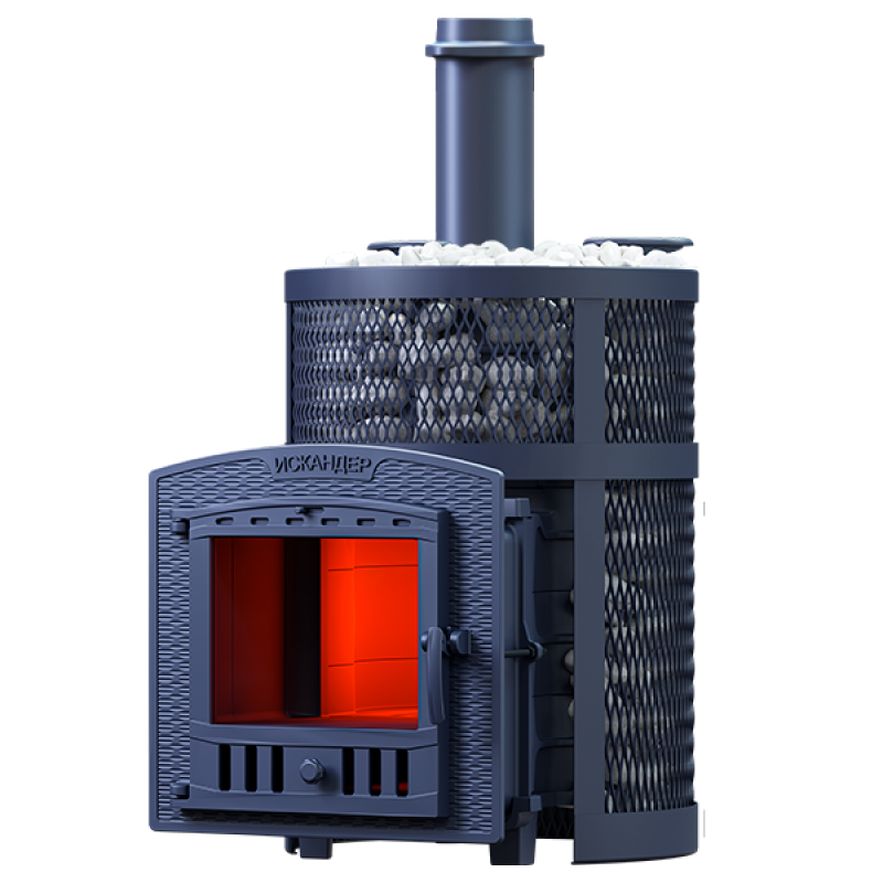 Печь Искандер получила от старших моделей парообразователь прямого нагрева - чугунную каменку имеющую существенную толщину и массу для аккумуляции тепла. Нагреваясь свыше 600С она эффективно нагревает дополнительный заряд, и при попадании воды даёт лёгкий мелкодисперсный пар. Расположенные снизу теплосъёмные шипы ускоряют нагрев парообразователя.