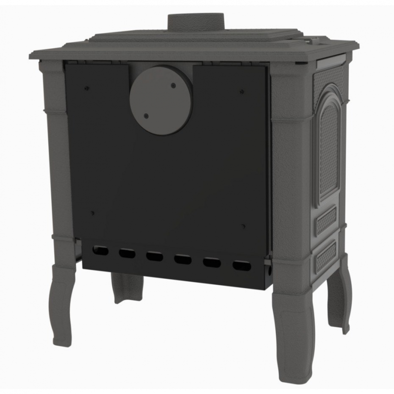 Чугунная конструкция обеспечивает долговечность, устойчивость к высоким температурам и хорошую теплоотдачу.