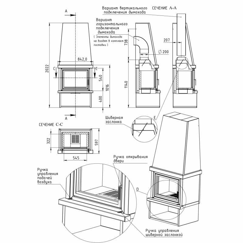 Стеклянная дверца — визуальный контроль горения и эффект камина