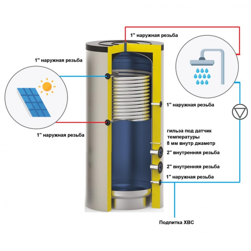 Для частных домов и коттеджей с большим расходом горячей воды.