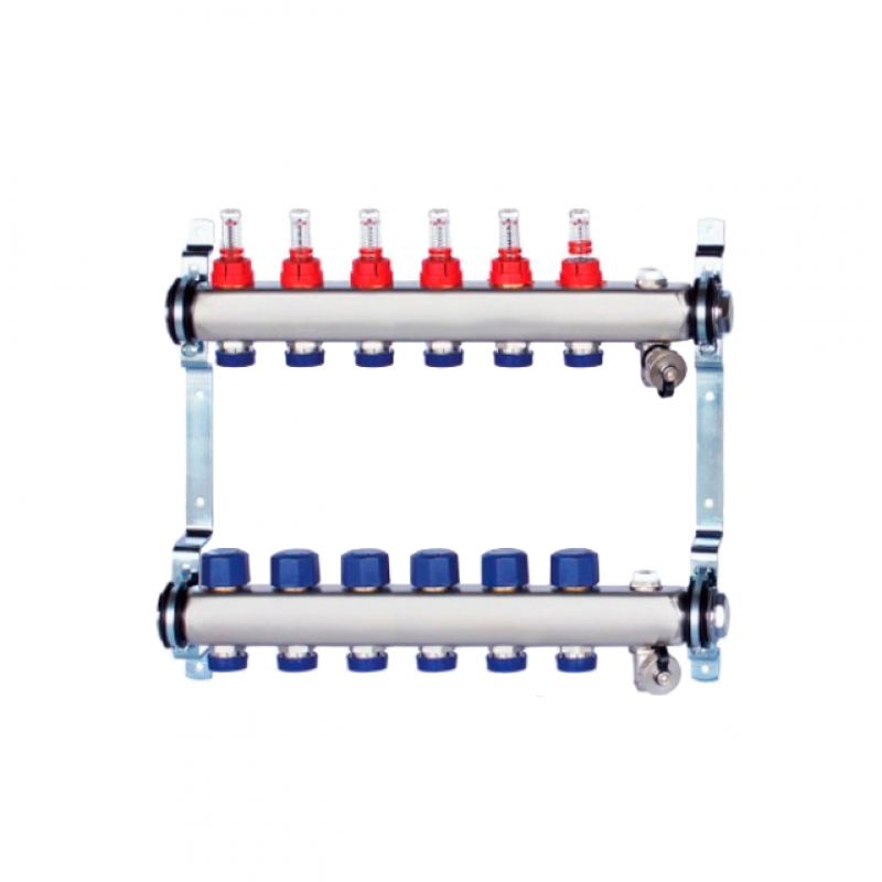 Встроенные расходомеры позволяют контролировать и точно регулировать поток воды в каждом контуре.