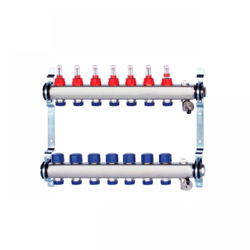 Гребенка TECline MC0307 с семью контурами и встроенными расходомерами предназначена для точного распределения теплоносителя в системах водяного тёплого пола. Коллектор обеспечивает эффективную регулировку температуры и равномерный прогрев всех помещений, независимо от их площади и конфигурации.