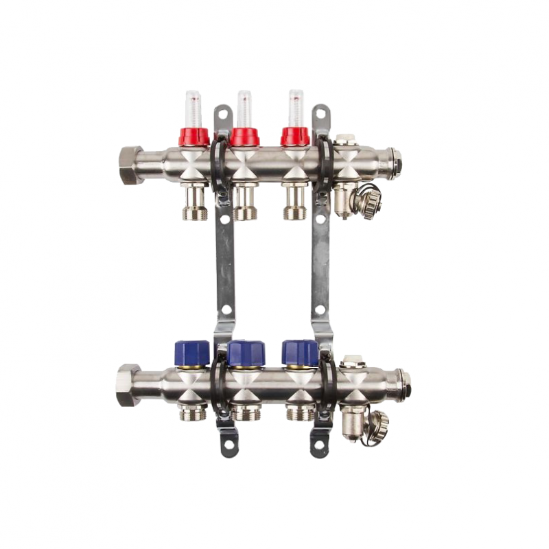 Расходомеры на подающем коллекторе обеспечивают визуальный контроль и точную регулировку потока теплоносителя.