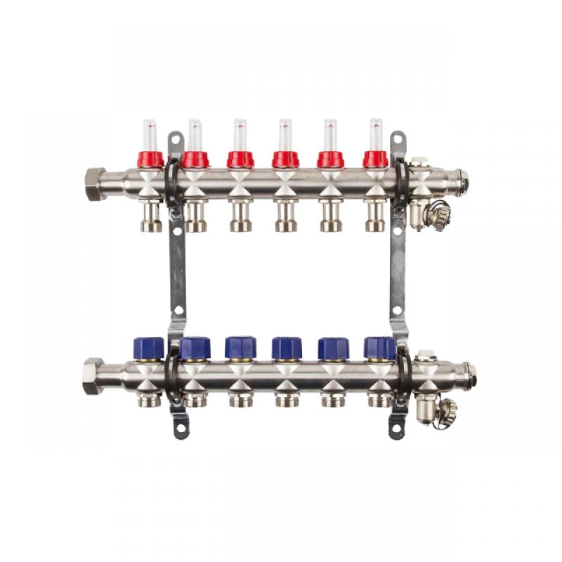 Встроенные расходомеры позволяют визуально контролировать и точно регулировать расход теплоносителя по каждому контуру.