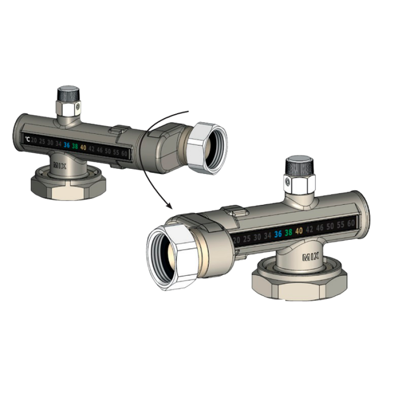 Смесительный клапан точно поддерживает температуру подачи в пределах 20–60 °C, предотвращая перегрев теплоносителя.